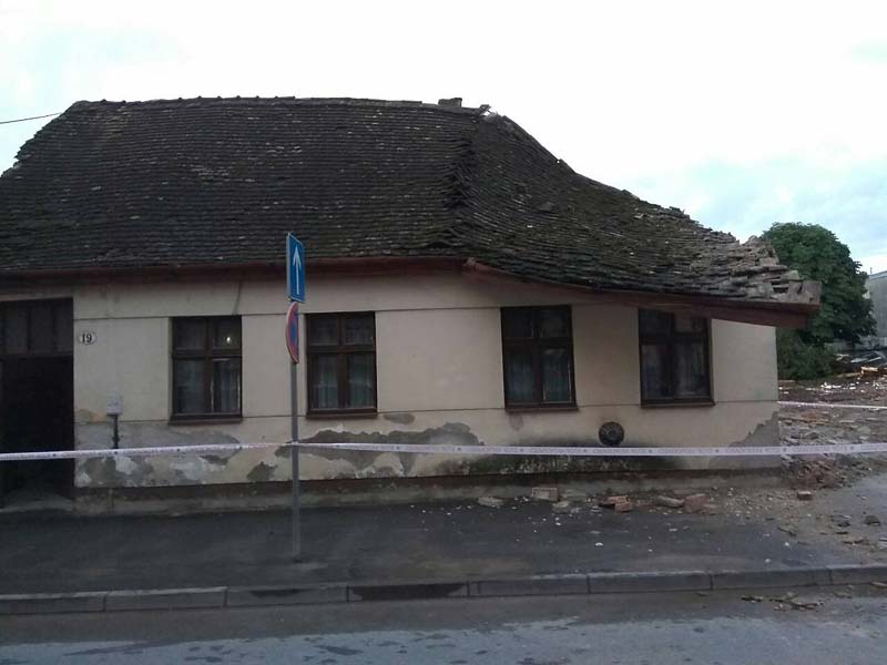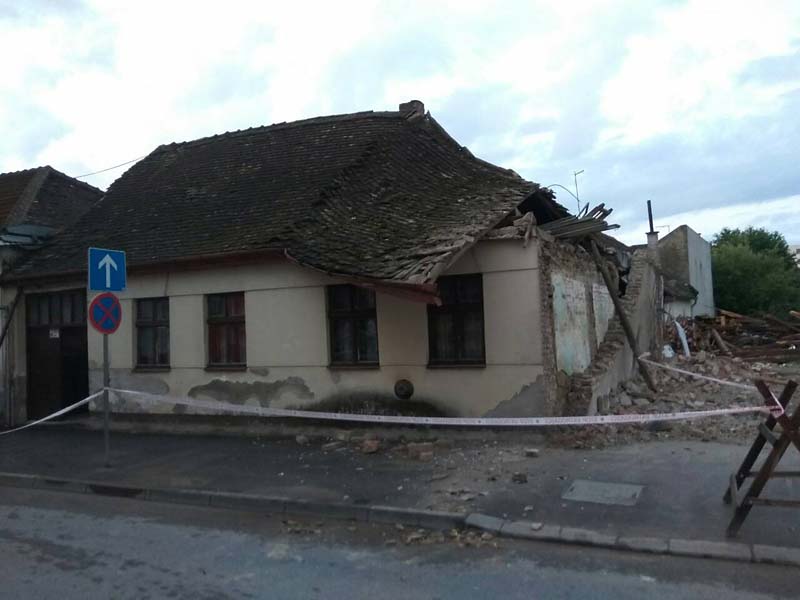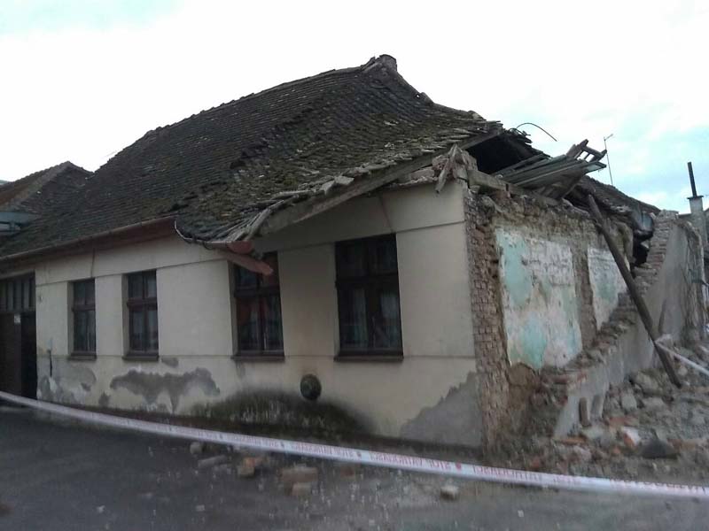 Na intervenciji oštećeno:urušen dio građevine zbog deformacije nosive konstrukcije.