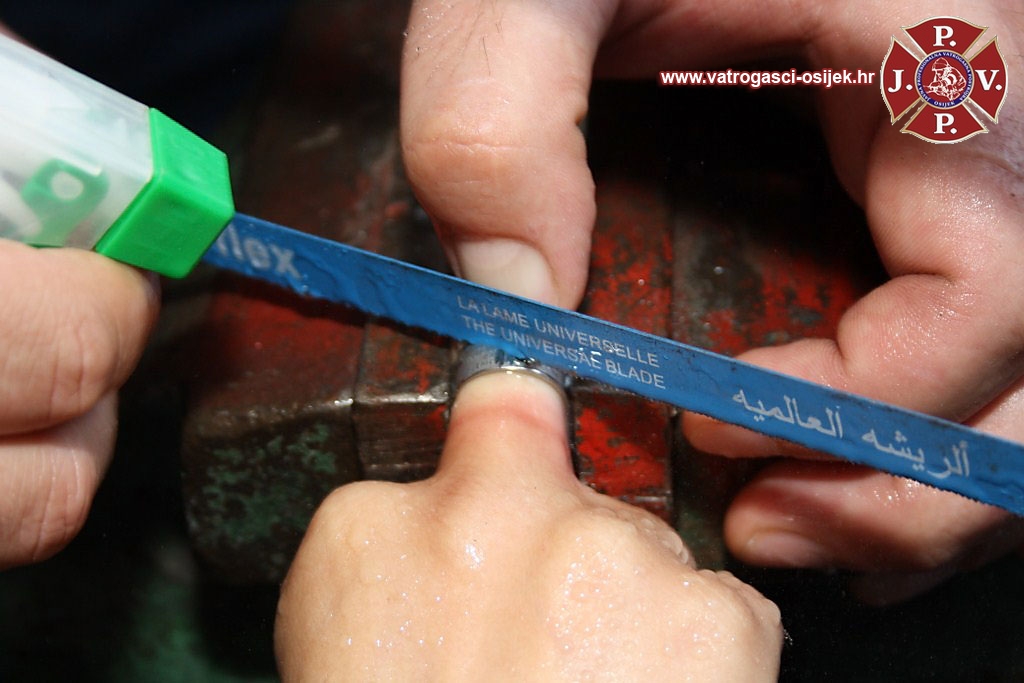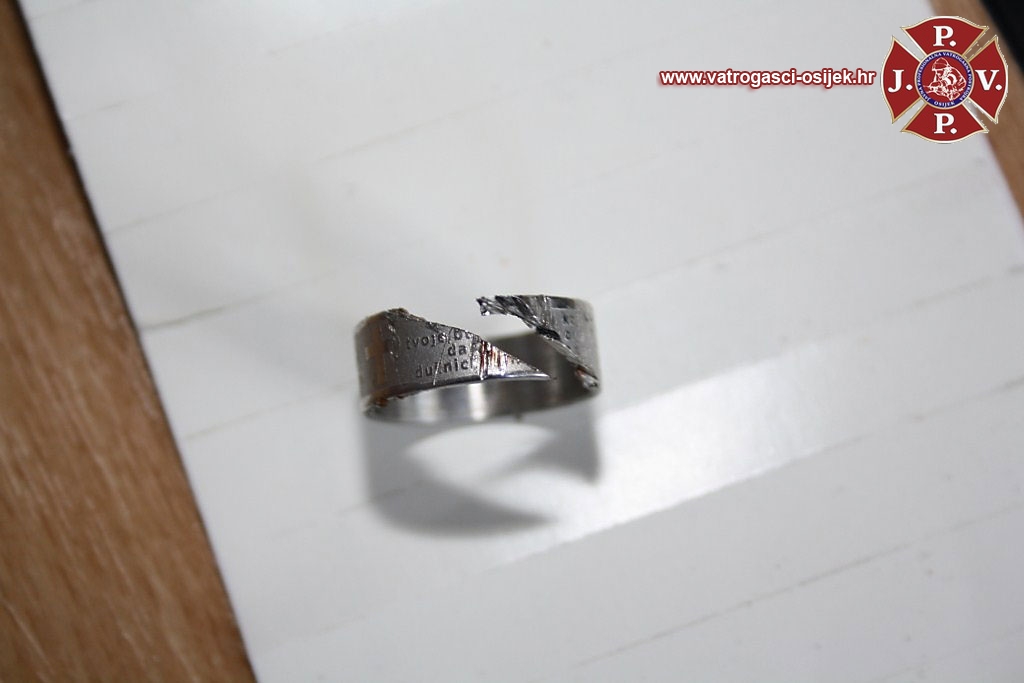 U prostorije JVP Grada Osijeka došla je gospođa kojoj je natekao prst te nije mogla skinuti prsten.Pažljivom intervencijom naših djelatnika i uz pomoć nekoliko alata uspjeli smo ukloniti prsten sa natečenog prsta bez ozljeda.