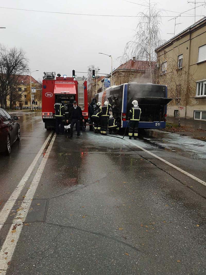Operativno dežurstvo JVP Grada Osijeka u 11,19h primilo dojavu da gori autobus.