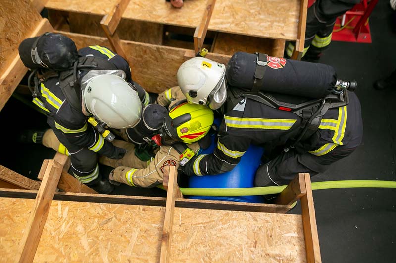 Prvi dan osječki vatrogasci upoznati su sa sigurnosnim protokolom, opremom, te mogućim opasnostima. Nakon teorijskog dijela organizirano je i praktično osposobljavanje koji se sastojao od tehnika i načina za prolaženje kroz otvore malih dimenzija.
