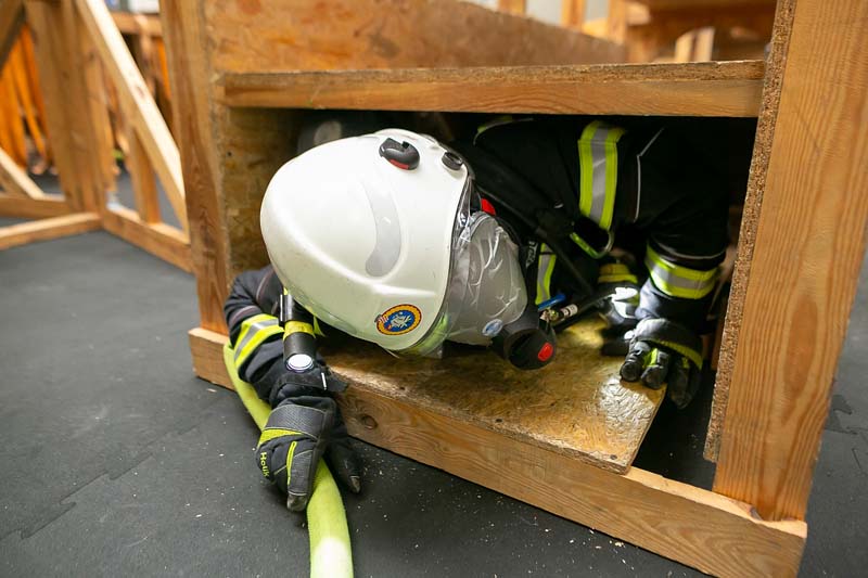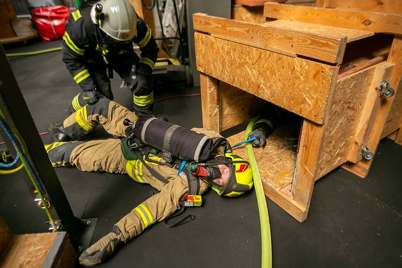 Nakon toga dio praktične obuke bio je i savladavanje prepreka na poligonu bez prethodnog upoznavanja prepreka. Na samom poligonu testirani su psihofizičke sposobnosti i reakcije vatrogasaca u nekim nepredviđenim situacijama koje su se morale savladavati uz uporabu radio veze i PASS uređaja te tražiti pomoć i dati svoju lokaciju. Automatski bežični PASS sustav povećava sigurnost korisnika u potencijalno opasnim situacijama.